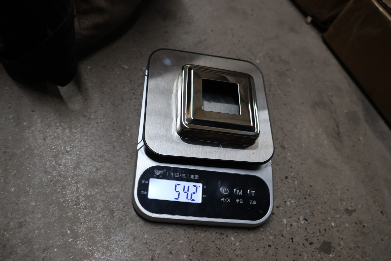Низ стойки фигурный под трубу 40х40 мм, 82х82х0.8, высота 19 мм, полированный (AISI 304) k030