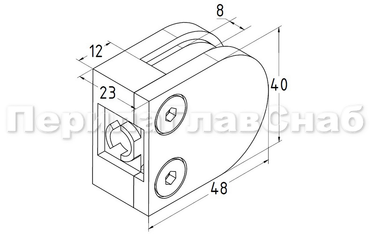 Стеклодержатель литой под стекло 8 мм (4+4 мм), плоский 40х22х50, под золото, (AISI 304), ПРЕМИУМ Фk002-88