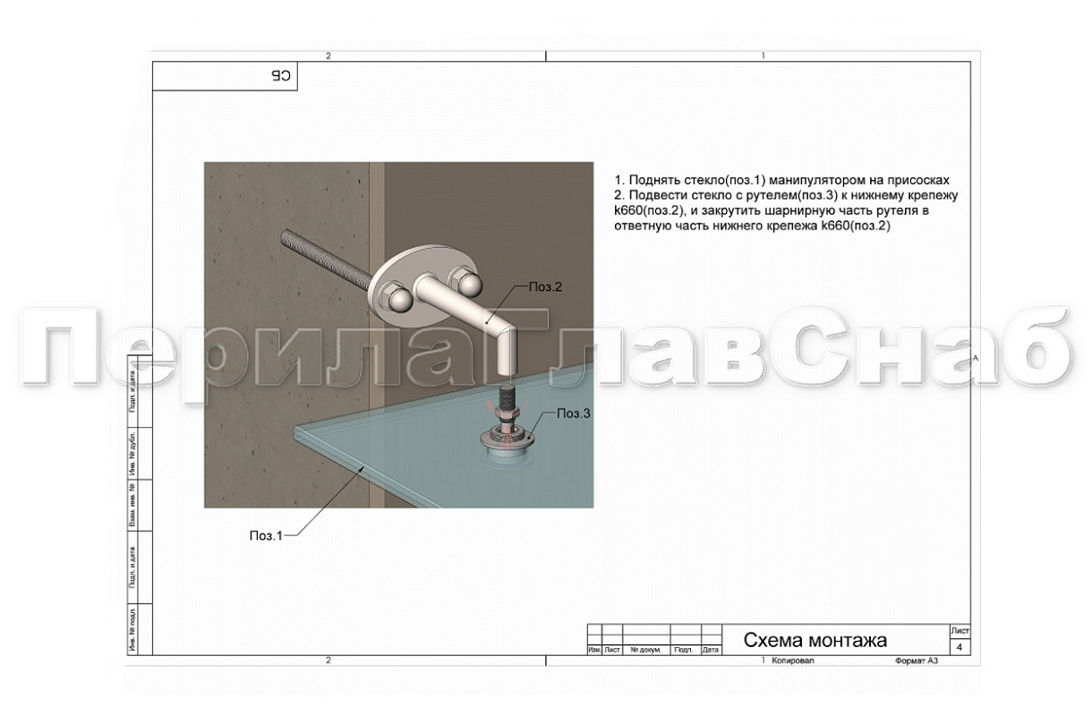 Держатель крепится к стене посредством шпильки. Затем в дистансер держателя вкручивается рутель (предпочтительно k274) и уже на рутель крепится стекло.