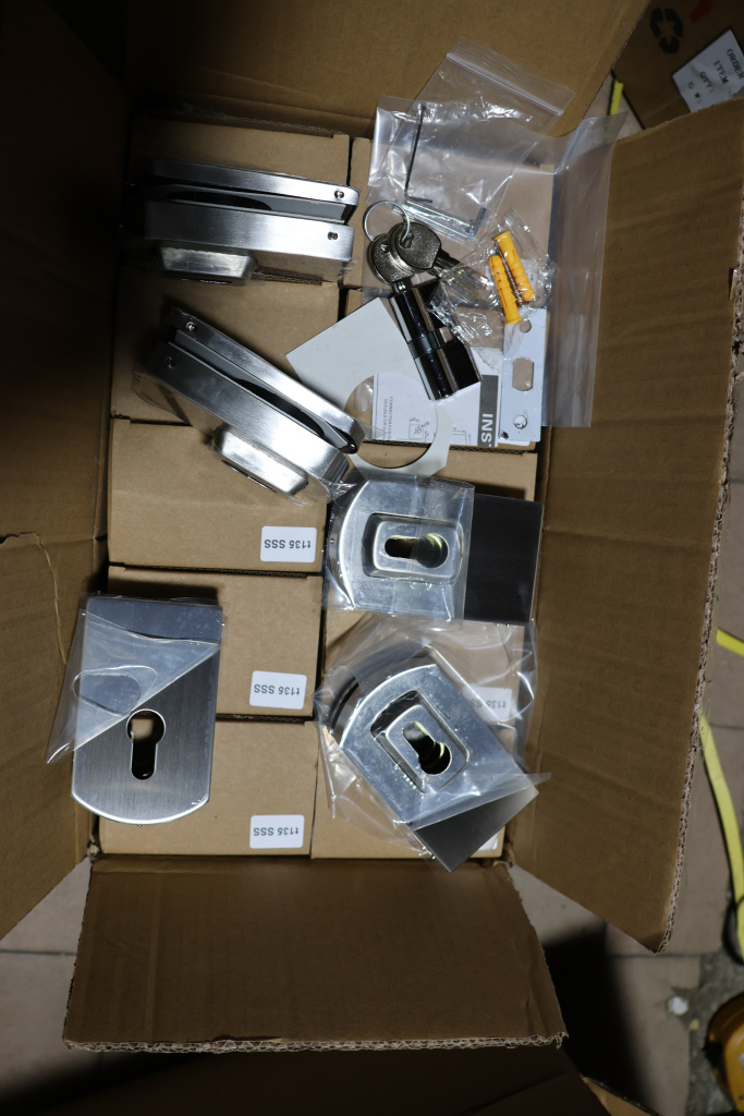 Замок для стеклянной двери вертикальный с ответной частью на стену и пол, шлифованный, вырез 15 t135 SSS