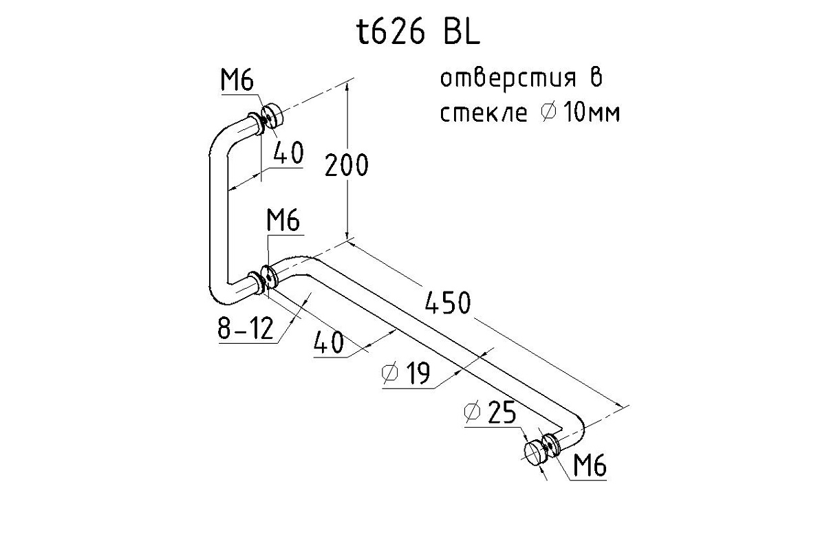 Дверная ручка 19х450х200 мм, черная, aisi 304 t626 BL