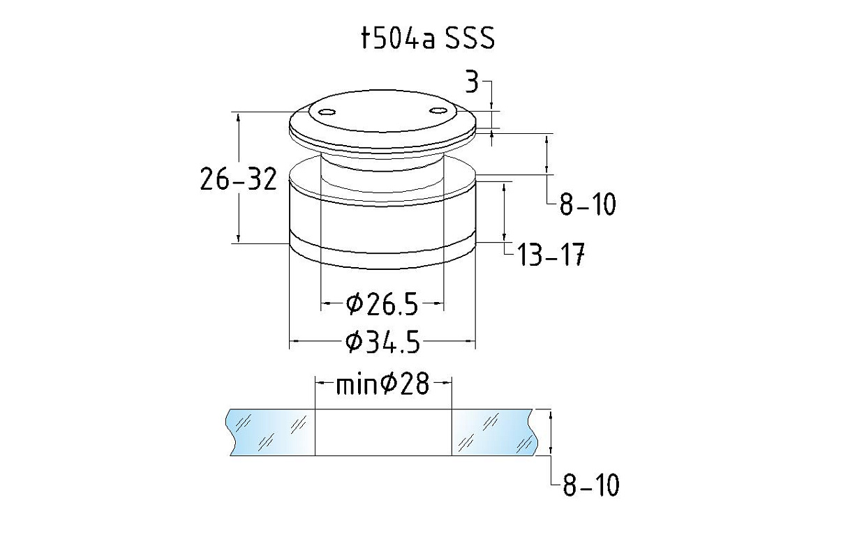 Точечный стеклодержатель 14-16 мм, регулируемый, без зенковки, для стекла 8-10 мм t504A SSS