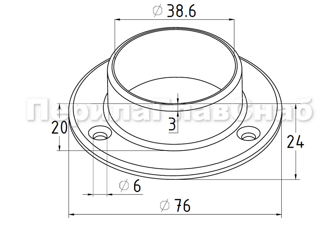 Фланец стойки 38/90 х 5 (4,3) х AISI 304 #200 3 отв х М10 х 20 k116-38-7