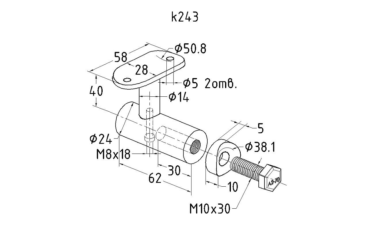 Очень интересная модель держателя, предназначенная для установки поручня на выносах к круглой стойке из трубы Ø38.1 мм. Допускается монтаж к стойке насквозь, через шпильку М10.