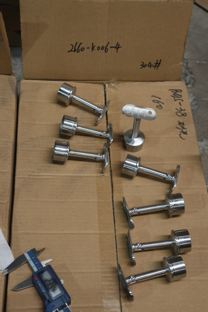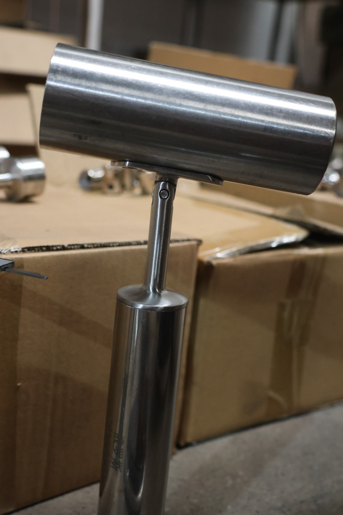 Наконечник (палец) с регулируемым ложементом под поручень диаметром Ø50.8 мм, на стойку диаметром Ø38.1х1.5 мм. Наконечник литой, шлифованный. Марка детали - AISI 304
