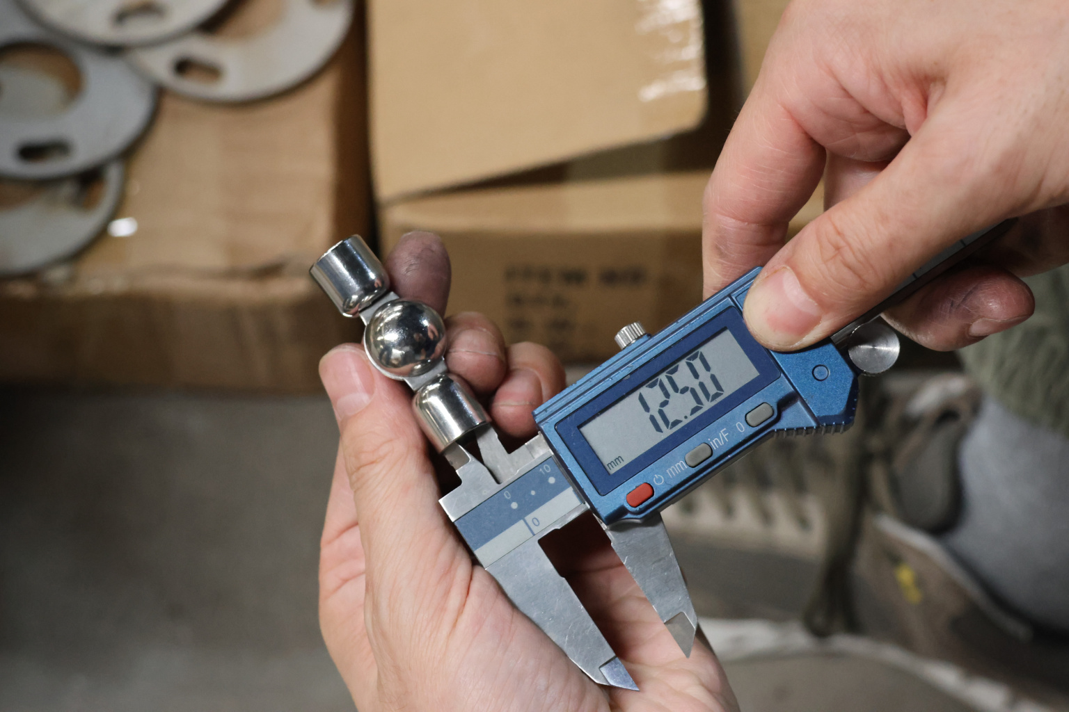 Поворот ригеля Ø12 мм, регулируемый, шаровый, внешний. Деталь полированная, штампованная. Марка стали - AISI 304