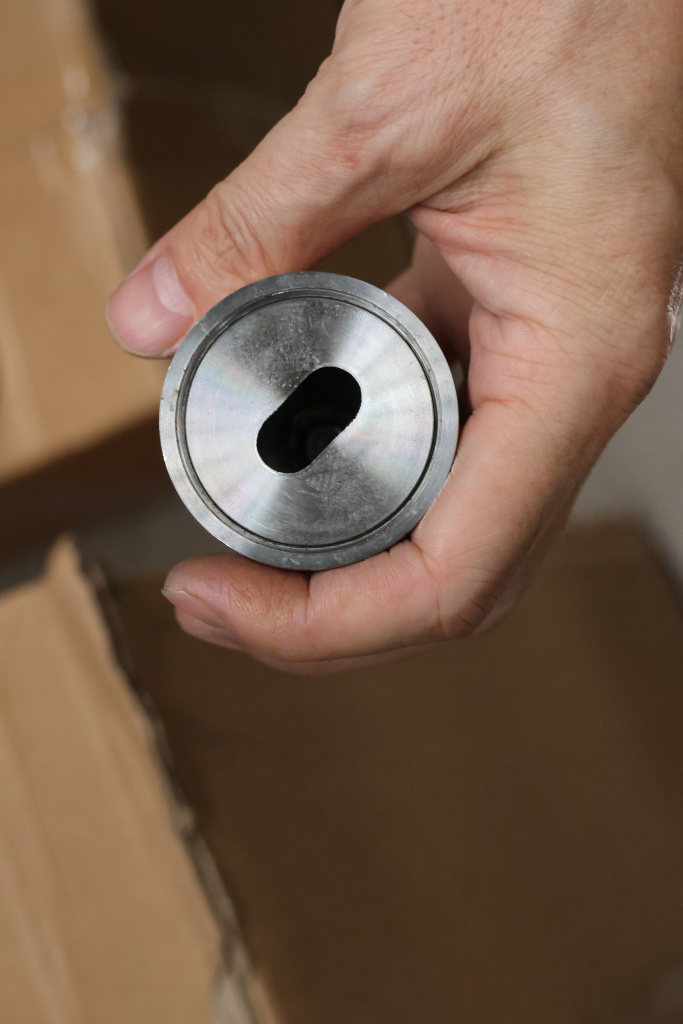 Диаметр отверстия в стекле минимально 16 мм. Полированная поверхность 600 Grit. Марка стали - AISI 304.