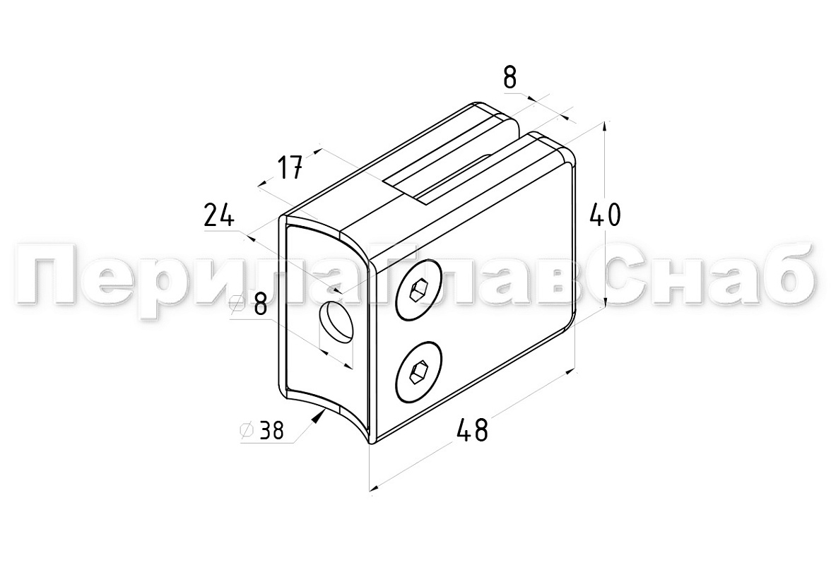 Стеклодержатель штампованный под стекло 8 мм (4+4 мм), под стойку Ø38.1 мм 40х24х55, полированный (AISI 304) k038