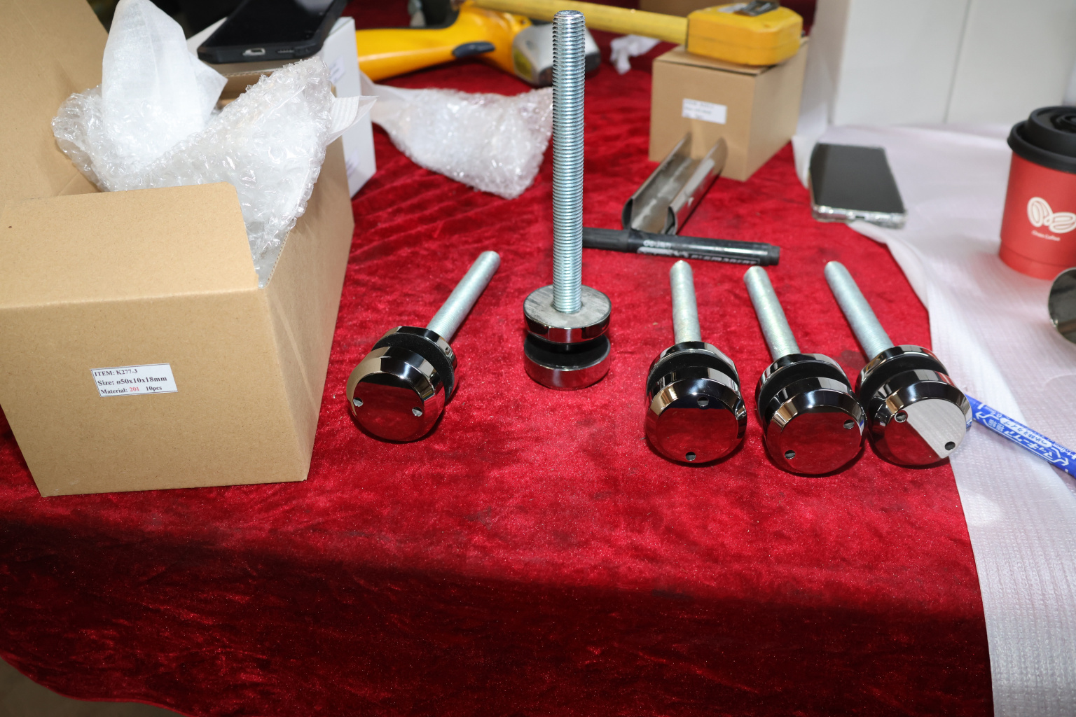 Комплект торцевого крепления несущего стекла, шпилька М16 AISI304, гайка-шайба Ø50х10мм, с регулировкой вылета 25-39мм, полированный, AISI 304 k277-11