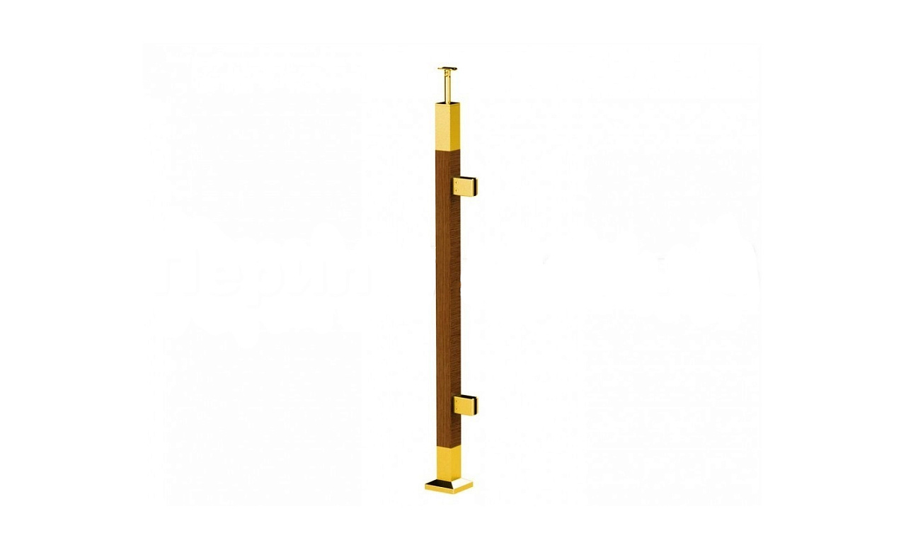 Готовая стойка 40х40х950 мм, деревянная, со вставками из нержавеющей стали 2х100 мм с 4 зажимными стеклодержателями, под золото k740-3-G купить в Симферополе