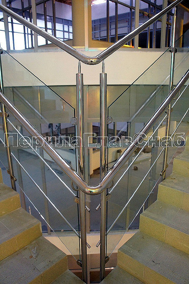 Ещё одной немаловажной особенностью стала необходимость сохранить максимум свободного пространства на лестнице. Ради этого стойки ограждения монтировались прямо в торец лестничного марша, благодаря чему удалось создать дополнительное пространство по ширине в целях обеспечения максимальной пропускной способности конструкции.