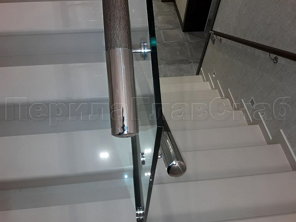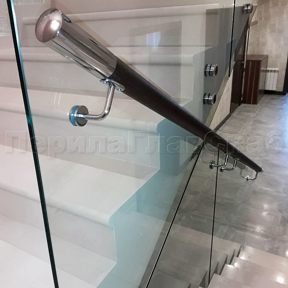 Наши заказчики сами выбирают цвет стекла, форму и материал поручня, а мы подсказываем, исходя из технических условий места установки ограждений, что лучше установить. Как например, стеклянные ограждения, которые мы установили на лестницу на точечном креплении, с деревянным поручнем на "выносе", т.е. установленный сбоку стекла. Очень надежная конструкция и главное безопасная, благодаря тому, что стекло закаленное. Главный плюс, что стекло с таким поручнем подходит под любой интерьер. Конструктив: ограждения лестницы по маршу из несущего стекла на точках. Стекло обычное, прозрачное, закаленное, толщиной 12мм с еврокромкой.