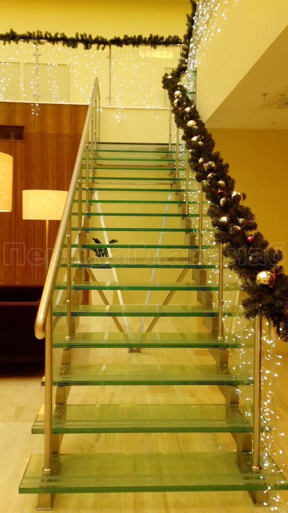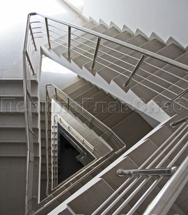 Ограждения лестницы без поручня с зажимными стеклодержателями и стойками