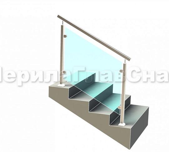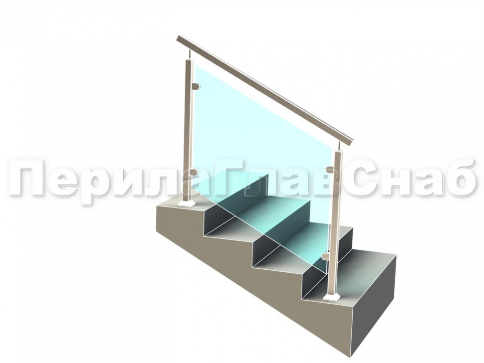 Ограждение лестницы с квадратными стойками и пластинчатыми стеклодержателями