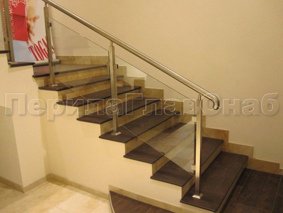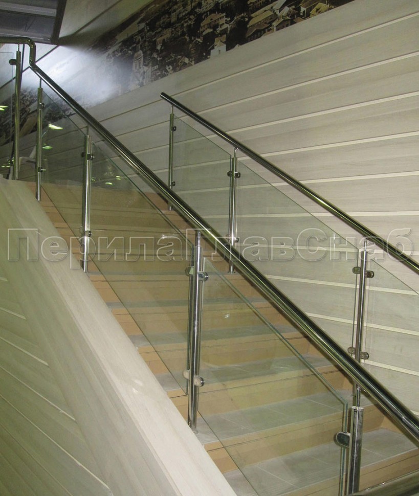 Ограждения лестницы без поручня с зажимными стеклодержателями и стойками