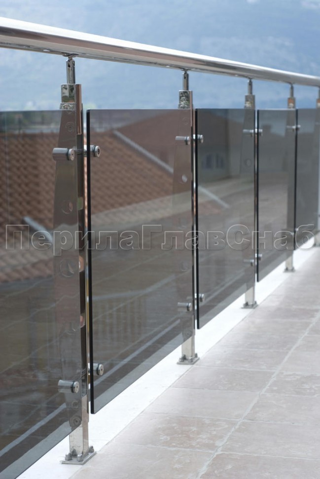 Ограждение для лестницы из нержавейки с зажимными стеклодержателями для крыльца