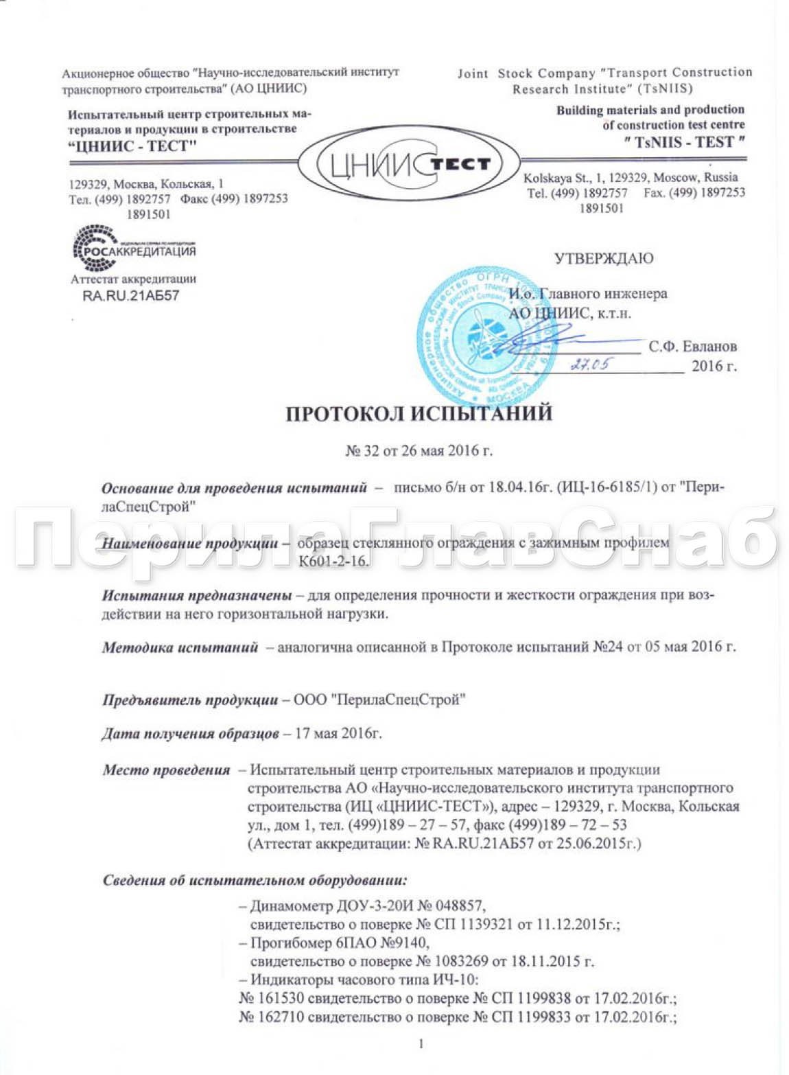 Посмотрите протокол Испытаний.