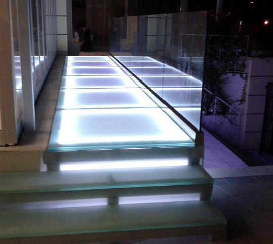 Подсветка стеклянного пола в гостинице